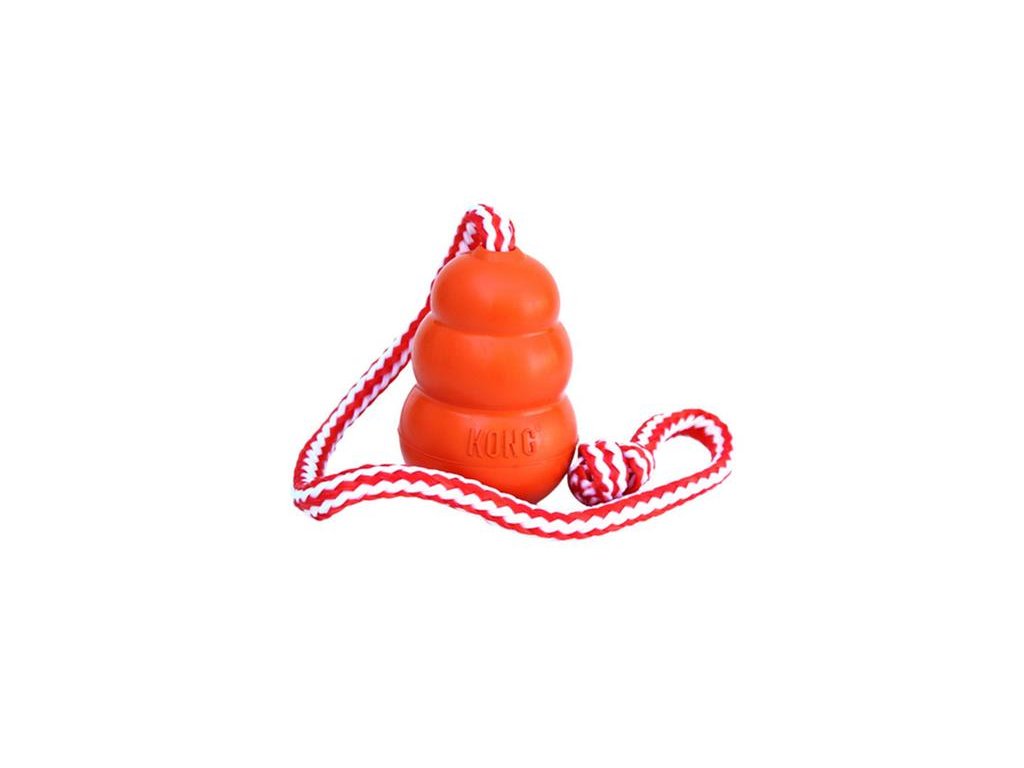 Hračka Kong Dog Aqua Granát s lanom oranžový, plávajúci, guma prírodná, M