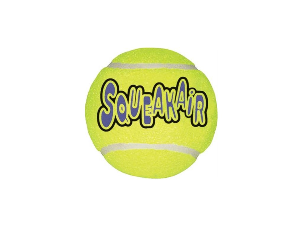KONG SqueakAir Ball kombinuje dve klasické hračky pre psy – tenisovú loptičku a pískatko –pre dokonalú hračku na aport. Naša odolná vysokokvalitná tenisová loptička SqueakAir Tennis Ball neopotrebováva chrup vášho psa. Je vyrobená zo špeciálneho neabrazívneho filcu.