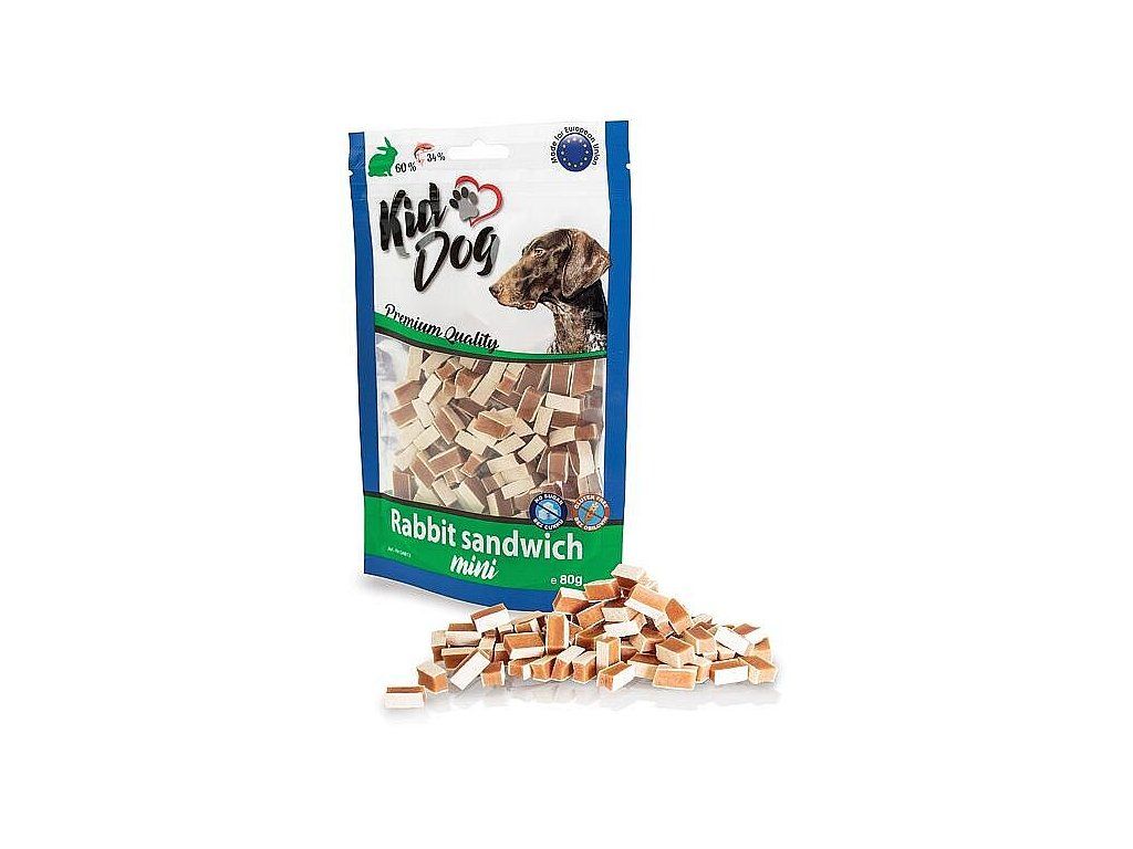 Pochúťka Kiddog Rabbit Sandwich MINI je vyrobená bez obilnín a cukru. Kvalitou sa maškrty radia medzi prémiové.