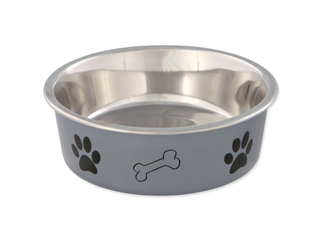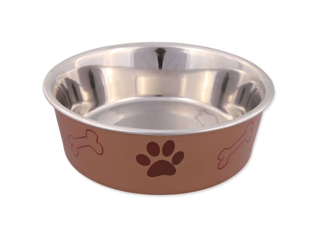 Miska nerezová s plastovým povrchom a protišmykovým krúžkom, ktorý zabraňuje pohybu misky po podlahe.