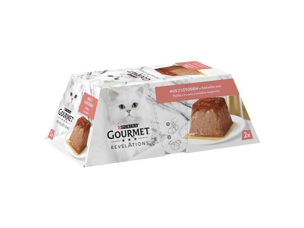 Na základe chutnej a starostlivo vyvinutej receptúry je GOURMET Revelations vyrobený z kvalitných surovín a ponúka vašej mačke skvelý kulinársky zážitok s chutnou omáčkou stekajúcou z vrchnej časti paštéty. Vznešená pochúťka, ktorá poskytuje skvelé jedlo pre vášho domáceho maznáčika v elegantnom balení a v ľahko servírovateľnej forme.
