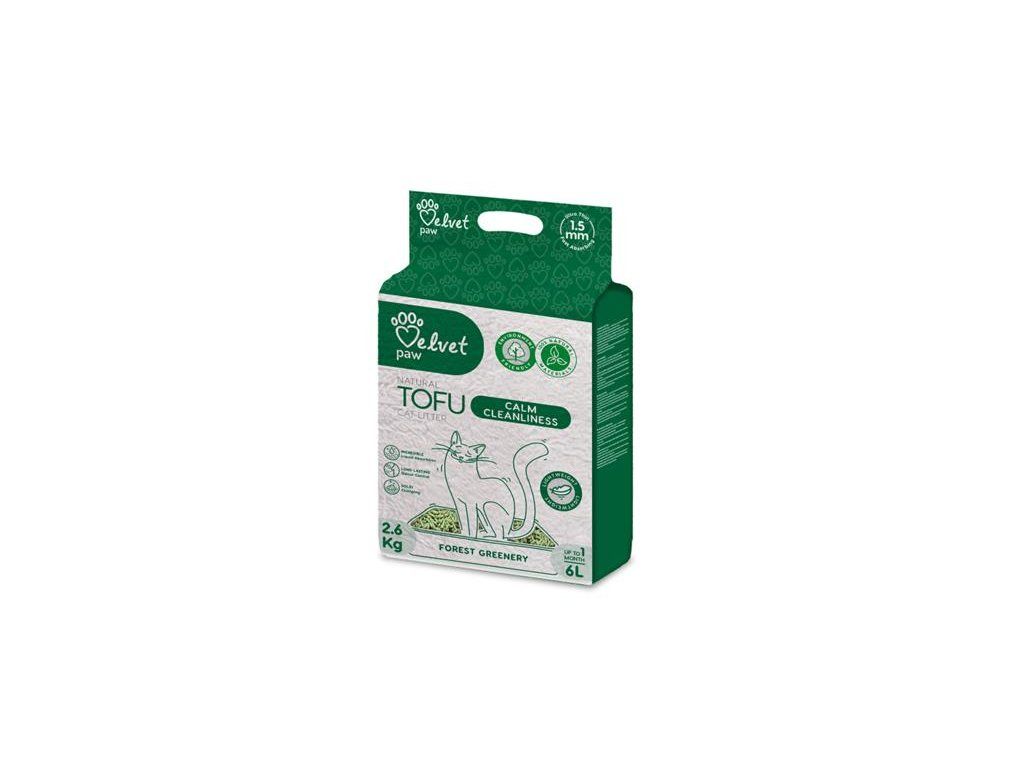 Podstielka pre mačky Velvet Paw Tofu upokojujúca čistota s esenciou lesnej zelene 6 l