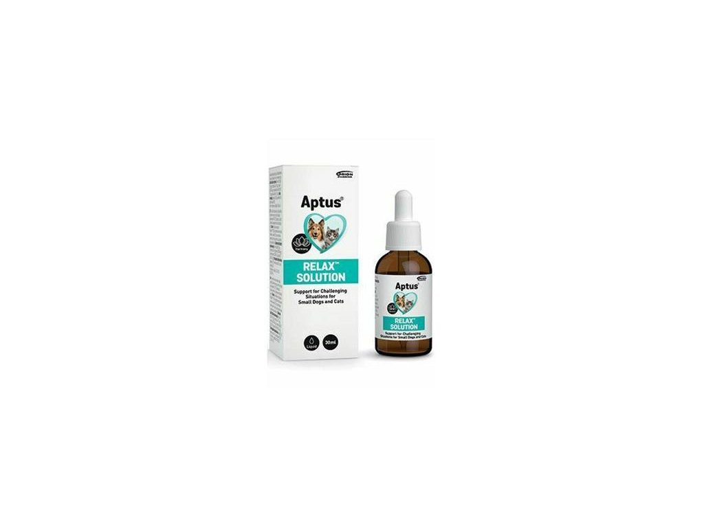 APTUS Relax roztok 30ml APTUS Relax roztok je ochutený roztok, ktorý sa používa na nastolenie pokojného a vyrovnaného správania u rozrušených mačiek a psov malých plemien. Odporúča sa v stresových situáciách, ako sú: cestovanie, návšteva veterinára, ponechanie doma osamote, novoročné oslavy a ohňostroje, búrky, hlučné rekonštrukcie, sťahovanie atď.
